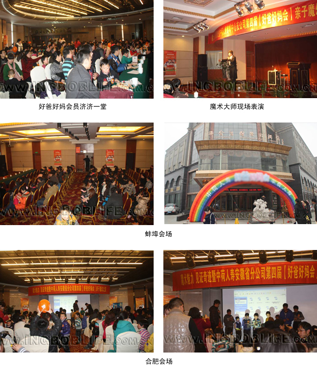 2012年3月18日,中荷人寿经过精心策划,在合肥华伦瑞雅国际大酒店和蚌埠玉金香国际大酒店连续组织了两场以“魔术魅力见证奇迹”的【好爸好妈会】精彩活动。共有好爸好妈会119个家庭累计299人参加了活动。