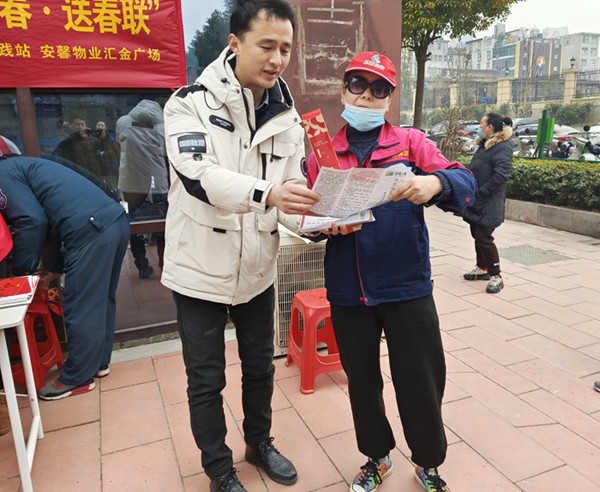 为做好春节反诈宣传工作,防范和化解风险隐患,春节前夕,中荷人寿安徽省分公司淮南中心支公司将反诈宣传与“迎新春·送春联”活动有机结合,在理工大社区汇金广场小区开展户外宣传活动。