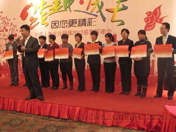 2011年北分银保积极配合总公司发展策略,全体将士团结一心、积极进取,夯实业务基础,提升业务品质,为分公司做出了重要贡献。为感谢银保全体员工一年的辛勤付出及其家属对工作的支持与帮助,提振团队士气,为明年业务推动营造良好氛围,2012年1月9日在国宾酒店北分银保组织召开了全体客户经理及其家属参加的答谢宴会。会上曲总做了热情洋溢的致词讲话,肯定了2011年北分银保取得的成绩,对银保团队的努力和家属的支持表示了感谢。展望2012年,曲总表示将继续带领全体伙伴跨越更高平台,再创新辉煌!