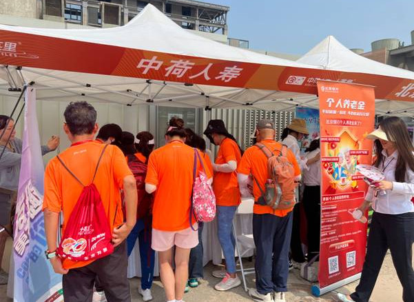 比赛当日天气炎热,中荷人寿北京分公司在会场内设置的专属展台,为广大参赛选手提供消暑降温的物资,在保障赛事顺利进行的同时,发挥金融机构力量与优势,为在场选手介绍并邀请参与中荷人寿特色金融知识科普平台,提升公众金融素养,远离金融诈骗。
