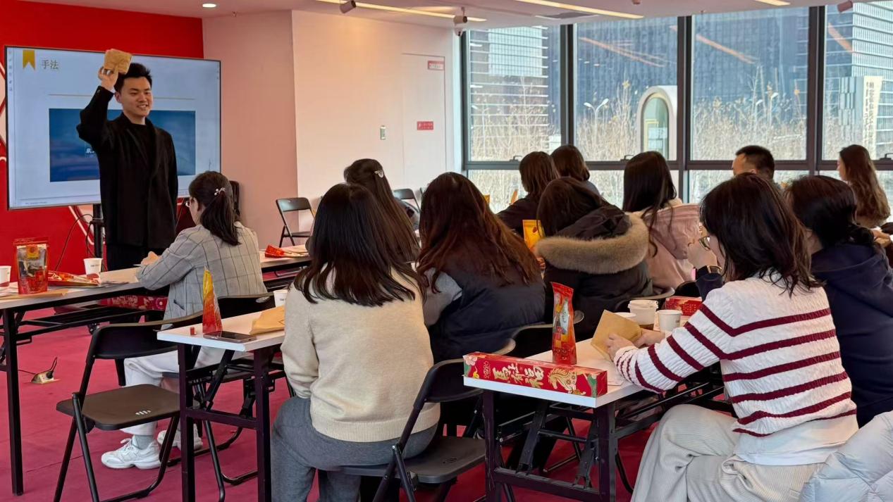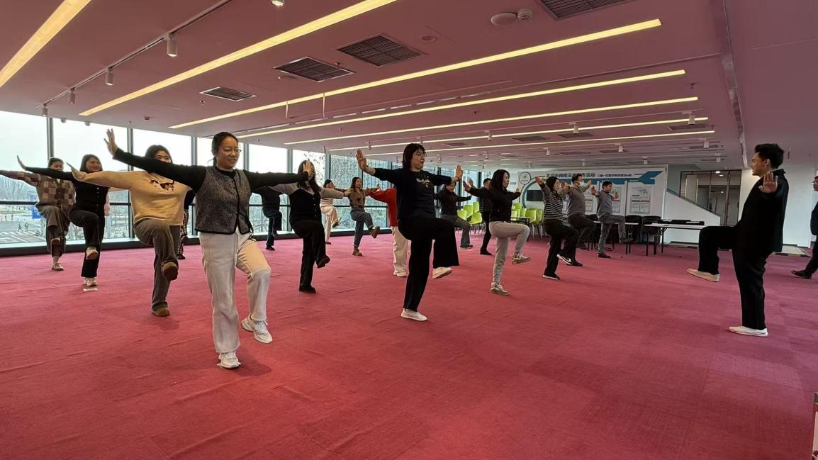 活动现场亮点十足,同仁堂专家现场开展冬季养生讲座,带领大家学习冬季食材搭配与养生知识,并开设养生茶制作体验环节。各类精致茶包整齐陈列,员工们亲手挑选配料、称量配比、封装装饰,在沉浸式创作中缓解职场压力。此外,大家还体验了八段锦健身功法,在舒缓动作中感受传统养生文化魅力,为后续金融知识学习营造了轻松氛围。