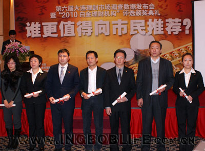 中荷人寿大连分公司获奖“2010白金理财机构”