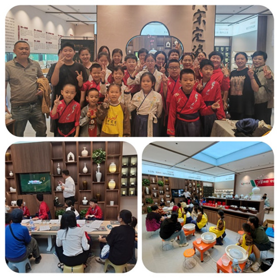 最受期待的定瓷手工制作与刻画环节,将活动推向高潮。在专业老师的指导下,孩子们小心翼翼地拿起工具,尝试揉泥、塑形,亲手体验定瓷的制作过程;随后一笔一划地在瓷坯上刻画经典纹样,从简单的线条到精致的图案,家长们也不时在旁协助,亲子间的互动温馨而默契。现场氛围热烈融洽,孩子们专注的眼神、认真的动作,以及完成作品后的喜悦笑容,构成了活动中最动人的画面。