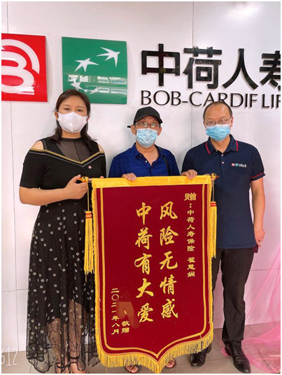 2021年8月,客户胡先生来到中荷人寿河南省分公司安阳营销服务部,将一面锦旗送到工作人员手中,借此感谢中荷人寿快速和贴心的理赔服务。