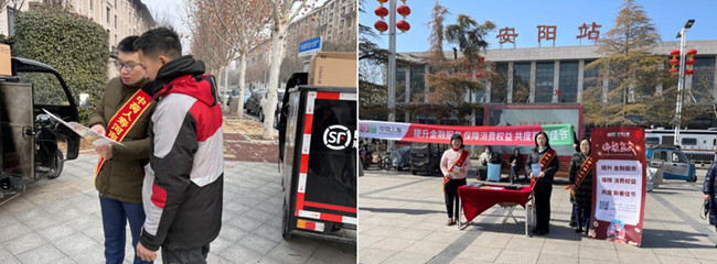 春节活动期间,中荷人寿河南省分公司各分支机构联动,在郑州、洛阳、焦作、安阳及南阳等地区的商圈、车站、影院、乡村、社区等区域开展了形式多样的宣传活动,在普及金融知识的同时,也为广大社会公众送上节日的祝福。河南省分公司组织宣传人员前往郑州市龙湖里商圈、郑东新区顺丰快递网点、亚新物业服务中心等地对社会公众以及新市民群体开展金融知识宣传,让更多的金融消费者对金融领域知识的了解,认识常见的诈骗套路。郑州中心支公司宣传人员在郑州市东方嘉禾影院开展金融宣传专场活动,宣传人员借助“中荷人寿金融云展厅”线上工具,让消费者增强了对保险知识、金融政策和消费者权益的理解。洛阳中心支公司在万达广场商圈围绕电信诈骗特征、主要手段、典型案例以及防诈小技巧等知识进行宣传讲解,提高消费者权益保护意识。焦作中心支公司在摩登街奥斯卡影院邀请客户观影的同时,为现场公司客户和消费者普及金融知识,提醒客户守好钱袋子、过好幸福年。南阳中心支公司在南阳市人民公园对游园的社会公众宣传金融消费者八项权益,让广大金融消费者了解自身权益,理性消费不乱贷。安阳营销服务部在安阳火车站向来往的旅客发放金融知识宣传折页,帮助广大旅客在出行之余增加对金融知识的了解,提示消费者防范非法集资等非法金融活动风险,提升消费者金融素养。