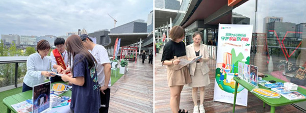 在繁华的郑州金融岛银泰商圈,活动现场被装扮得既时尚又充满活力。郑州中心支公司的宣传摊位前,摆放着色彩鲜艳的宣传展板和海报,吸引着过往行人的目光。宣传人员向岛上往来的外卖小哥、店铺工作人员等新市民群体发放反诈手册、金融教育宣传手册等资料,并耐心解答他们的疑问,现场气氛热烈而有序。荥阳营销服务部和登封营销服务部的宣传人员也同样行走在当地商铺和临街店面,为奋斗在城市的新市民群体送去金融需求。