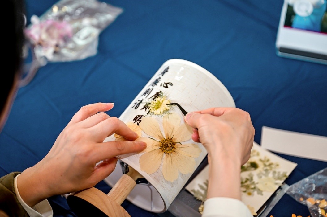 接下来的非遗花草灯手作体验,让现场充满了专注与创造的乐趣。在专业老师的悉心指导下,嘉宾们巧妙地将干花与叶片点缀于灯罩上,设计属于自己的独特图案。随着一盏盏花草灯被轻轻点亮,温暖的光晕映照着大家欣喜的笑容,也为这场田园聚会留下了光影交织的美好纪念。