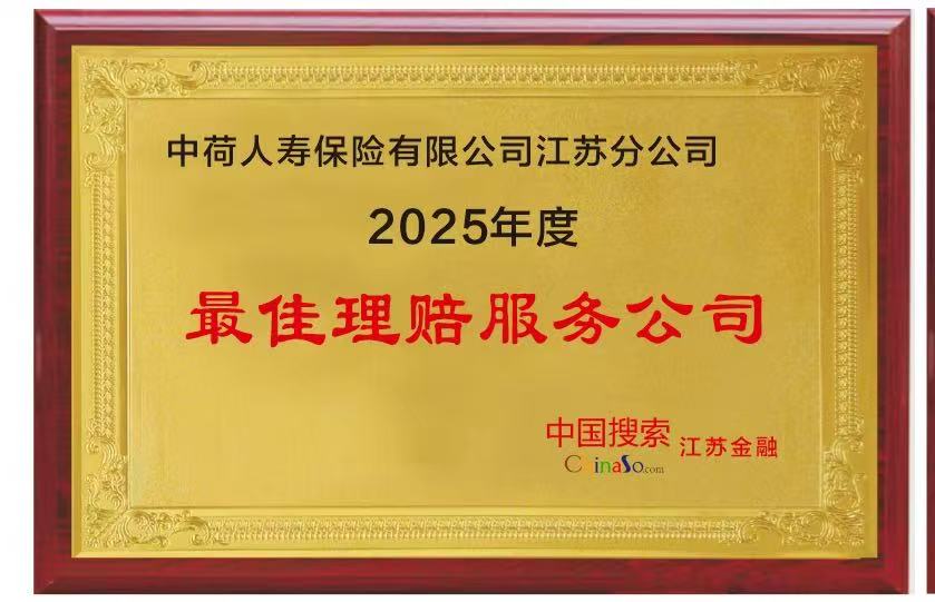 近日,在中央七大新闻单位联合打造的中国搜索在南京主办的江苏金融评选活动中,中荷人寿江苏分公司凭借卓越的理赔服务质量和创新的服务模式,荣获“2025年度最佳理赔服务公司”称号。这一荣誉是对中荷人寿江苏分公司在保险服务领域持续投入和卓越表现的高度肯定。