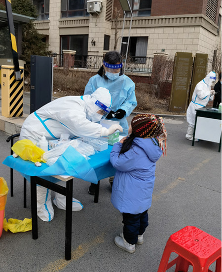 在沈河区东陵街道五月花社区的核酸检测点上,总能看到一位志愿者的身影,她身穿“大白”防护服全副武装,疏导居民保持1米距离,有序排队进入核酸检测采集区,引导老弱病残进入绿色通道,耐心细致地给每一位社区居民检查“健康码”、测量体温、核酸采样……这个身影便是参加防疫志愿活动的辽宁分公司党员于丁一。她用自己的实际行动助力抗疫,确保了采集点高效有序运转,身体力行冲锋在抗疫一线,以实际行动践行共产党员的先锋模范作用。