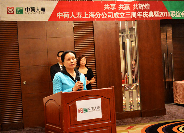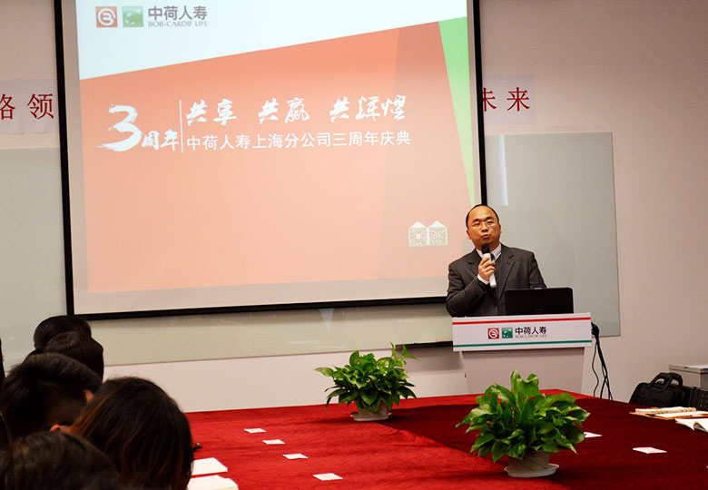 12月4日,中荷人寿上海分公司成功举办“共享 共赢 共辉煌”三周年庆典暨联谊会,总公司财务总监席明、北京银行上海分行行长万英及北京银行上海各支行行长出席联谊晚宴。