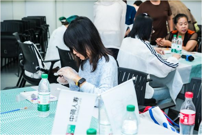 沙龙过后,沉浸式DIY五行药牌环节成为整场活动最令人期待的“治愈环节”。在工作人员的耐心引导下,嘉宾们一步一步按照指引操作:从根据个人喜好挑选心仪香料,到将原料细细研磨成粉,再按照精准比例调配香料--让不同香气在融合中碰撞出丰富层次;随后加入天然粘粉与适量清水,反复搅拌揉捏成细腻香泥。过程中,大家放下日常琐碎,专注于指尖的每一次轻揉慢捻,在自然香气的包裹中释放心灵压力,为情绪找到一处“温柔安心处”。