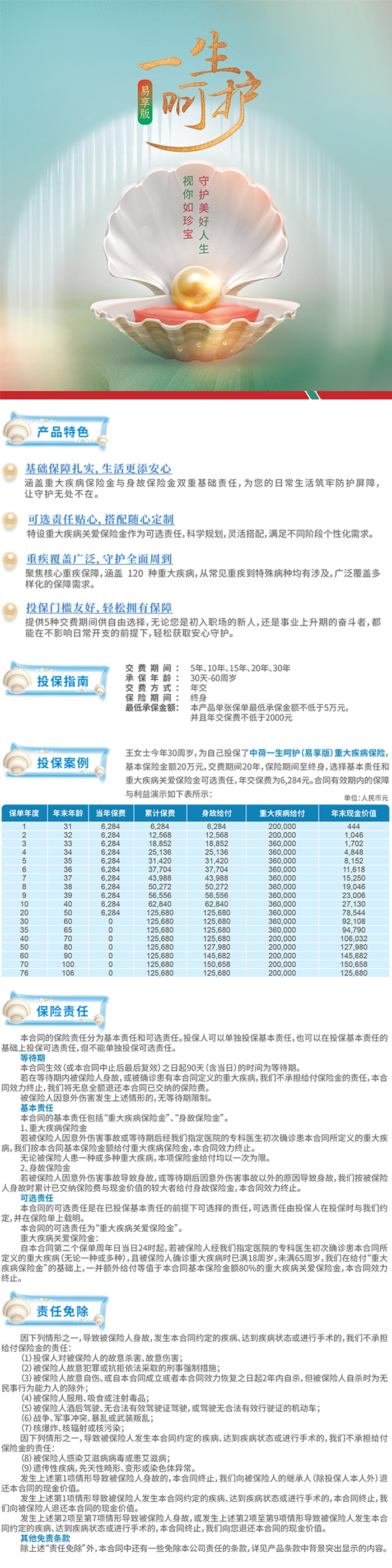 中荷一生呵护(易享版)重大疾病保险(ADLB)